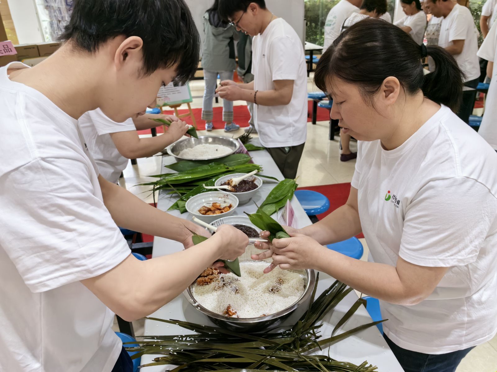 “粽”香端午 一聲令下,選手們沉著冷靜,男女搭配,分工有序,一片片粽葉在他們手中輕巧飛舞,吸引來許多員工駐足圍觀,加油助威。