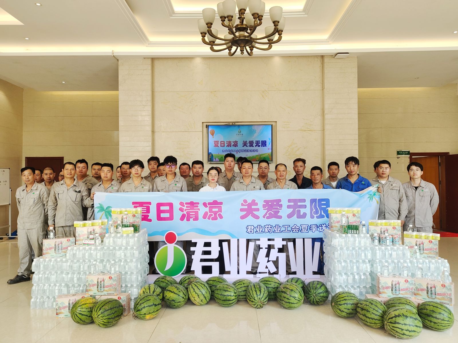 8月9日上午,君業(yè)藥業(yè)工會(huì)為高溫天氣下在生產(chǎn)一線堅(jiān)守的的四百余名員工們送上一份清涼、一份保障。